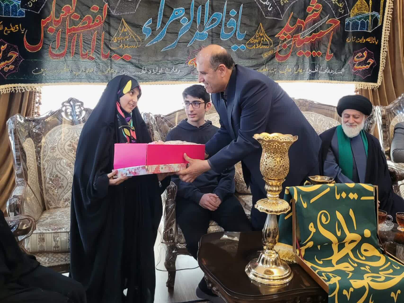 به گزارش خبرگزاری صداوسیما ؛ همزمان با فرارسیدن دهه کرامت و میلاد پربرکت حضرت فاطمه معصومه (س) و روز دختر، رضایی مدیرکل بنیاد شهید و امور ایثارگران تهران بزرگ به همراه ابراهیمپور مدیرکل بازرسی بنیاد شهید و خادمین آستان مقدس کریمه اهلبیت حضرت معصومه (س) با حضور در منزل شهیدان سعید خاکسار و ابوالفضل دمیرچی از دختران مکرم این شهیدان بزرگوار تجلیل کردند.
