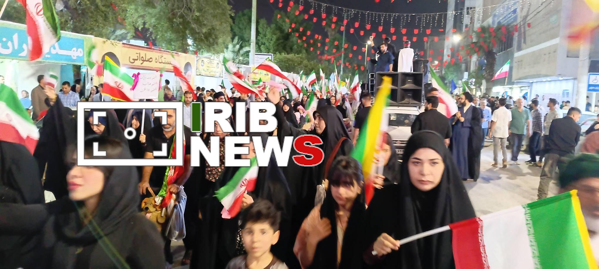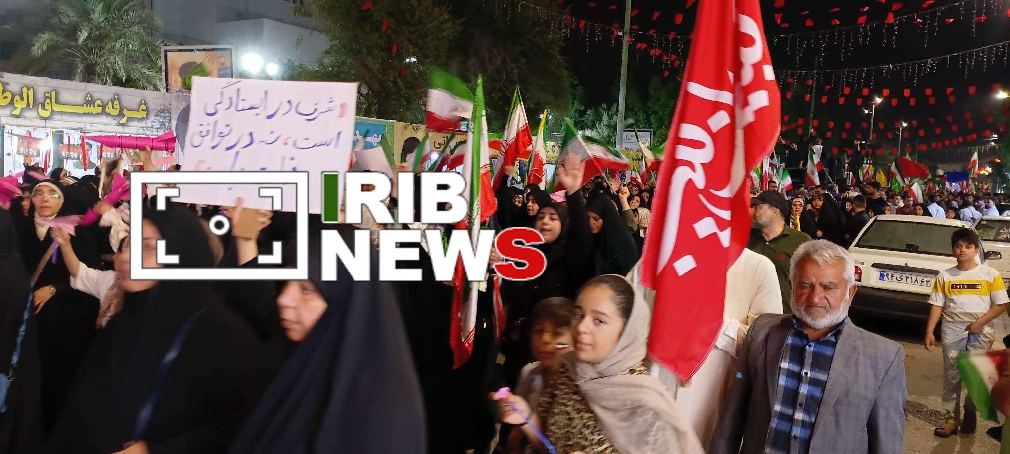 مردم شهرستانهای آبادان و خرمشهر در پنجاه و یکمین شب در حمایت از ایران اسلامی به خیابانها آمدند.