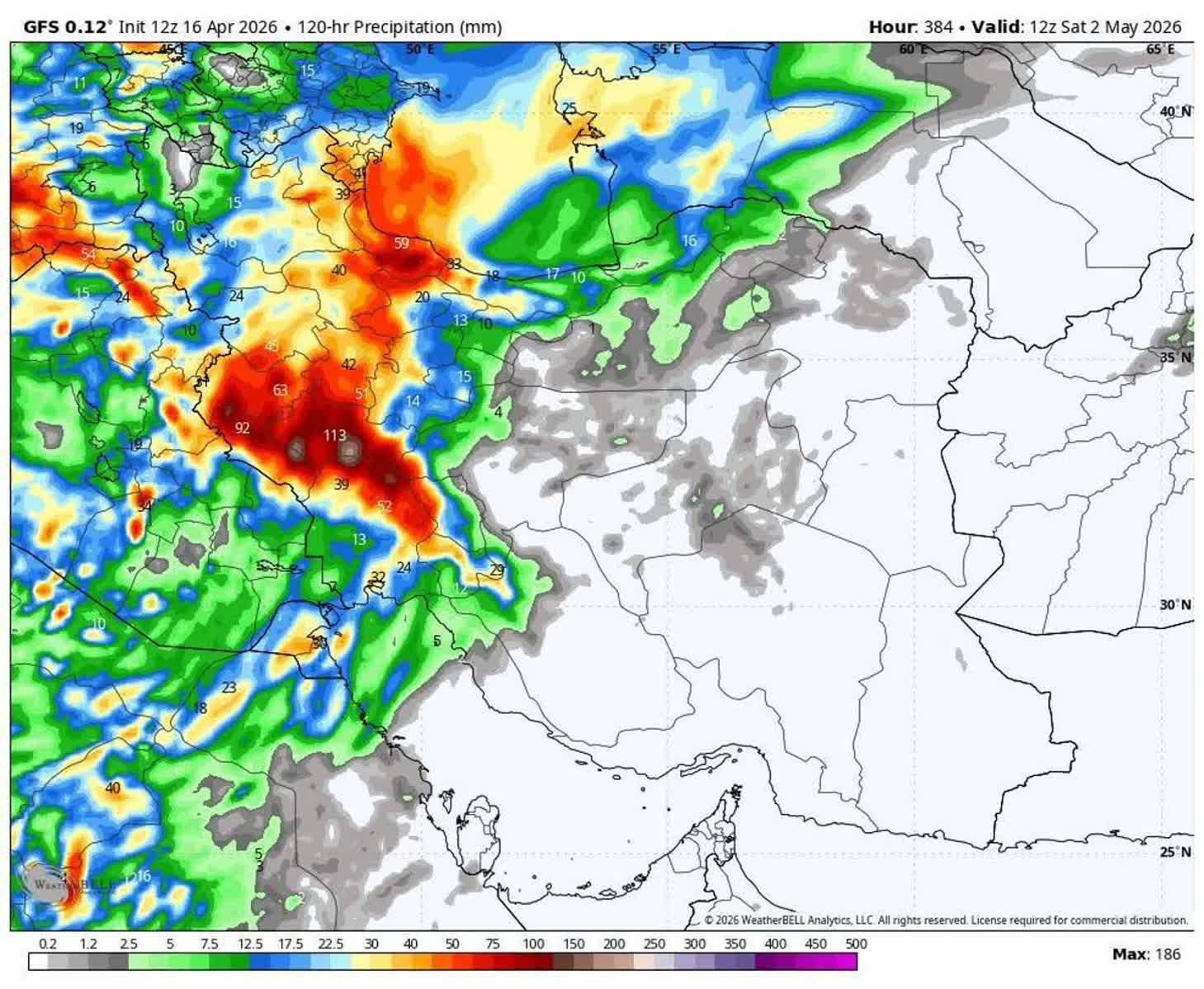 براساس بررسی آخرین نقشه های پیش یابی و با فعالیت امواج تراز میانی جو، بارش متناوب باران و رعدوبرق و وزش باد شدید (تا ۹۰ کیلومتر بر ساعت) پیش بینی می شود.