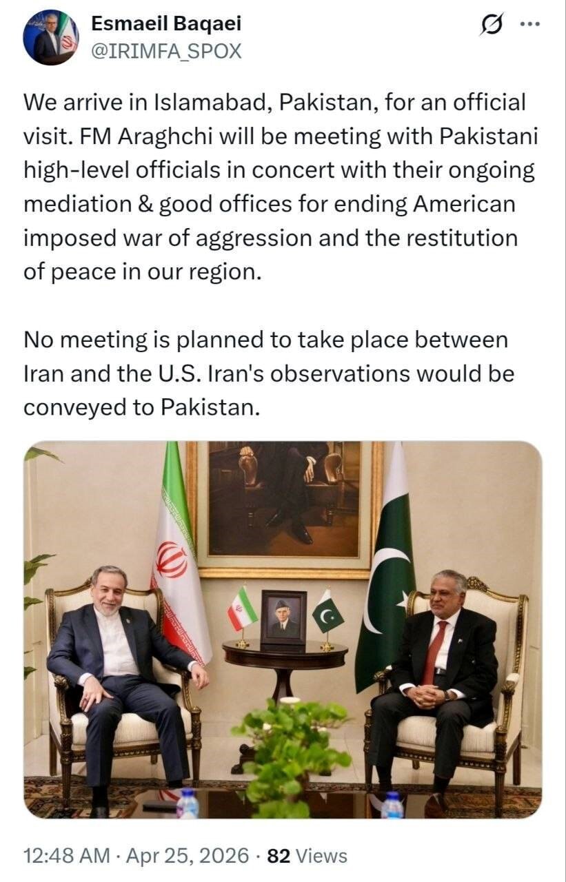 آقای عراقچی تاکید کرد: هیچ دیداری بین ایران و آمریکا برنامه ریزی نشده و نظرها و ملاحظات جمهوری اسلامی ایران به طرف پاکستانی منعکس میشود.